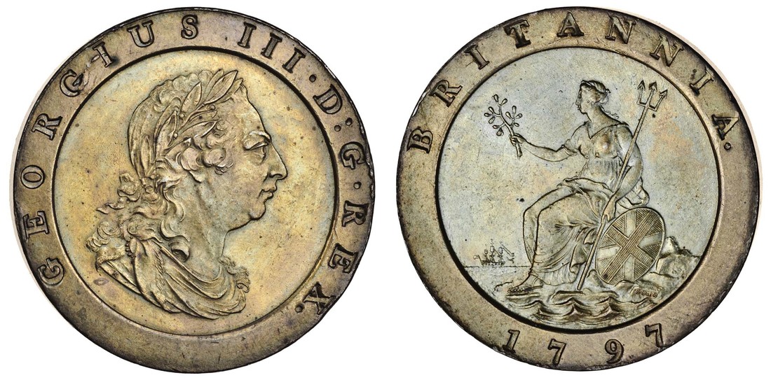 (x) George III (1760-1820), Twopence, 1797, laureate, draped bust right, rev. Britannia seated left (S.3776), one minor edge bruise, old tone, extremely fine