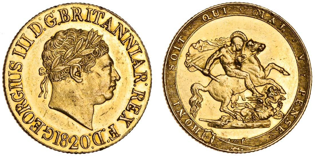 George III (1760-1820), Sovereign, 1820, open 2, laureate head right, rev. St George and dragon (MCE 466; S.3785C), good very fine