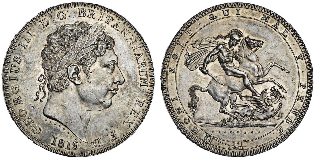 George III (1760-1820), Crown, 1819 lix, laureate head right, rev. St George and dragon (ESC 214; S.3787), extremely fine