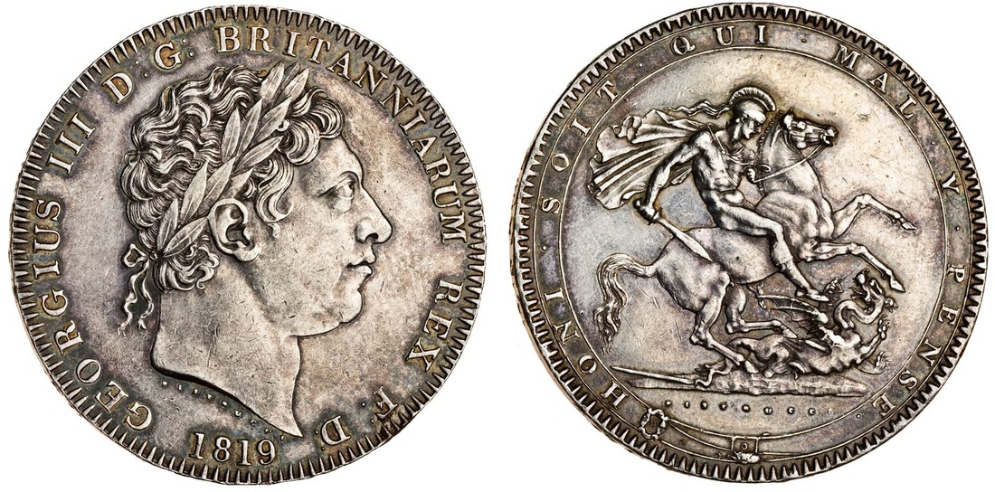 George III (1760-1820), Crown, 1919 lix, laureate head right, rev. St George and dragon (ESC 214; S.3787), nearly extremely fine