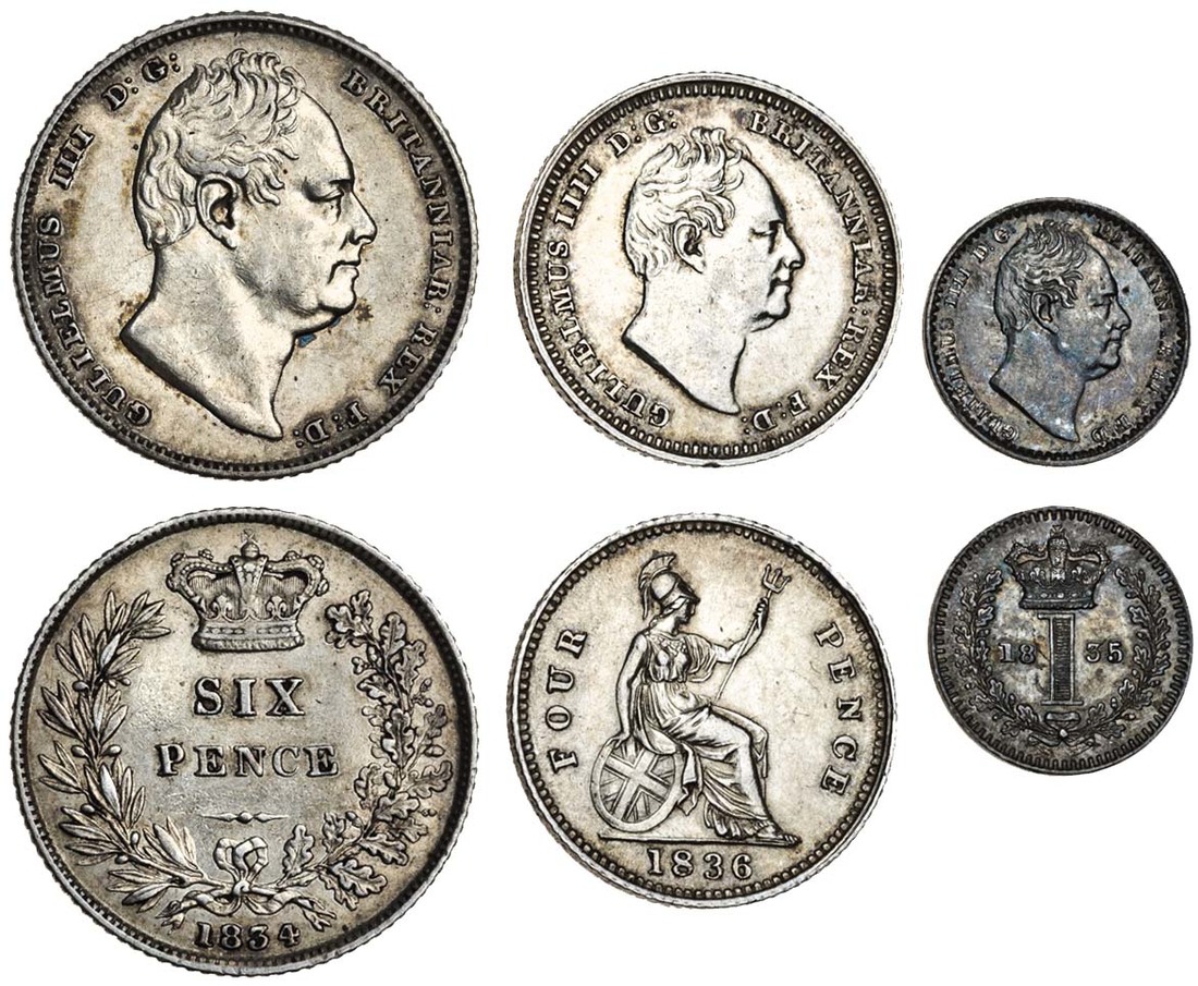 William IV (1830-37), Sixpence, 1834, Groat, 1836, silver Penny, 1835, very fine (3)