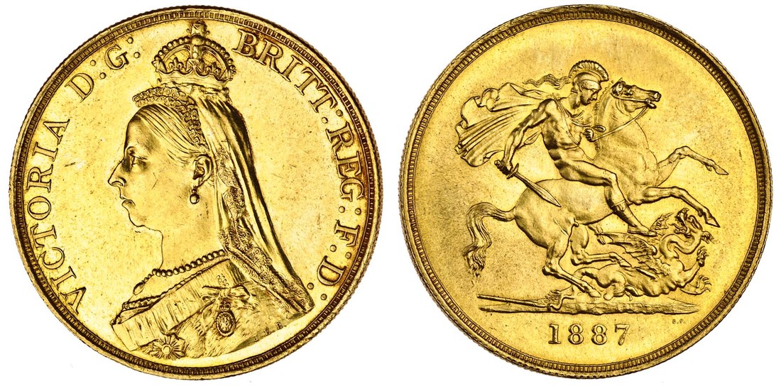 (g) Victoria (1837-1901), Five-Pounds, 1887, Jubilee bust left, rev. St George and dragon (S.3864), extremely fine