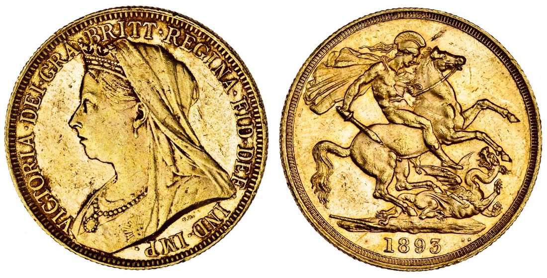 (g) Victoria (1837-1901), Two-Pounds, 1893, old head left, rev. St George and dragon (S.3873), good very fine