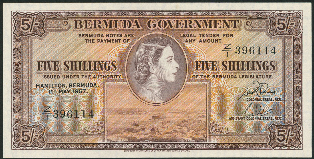 (x) Bermuda Government, 5 shillings (3), 1947,1952,1957, brown and multicoloured, George VI on first note, Elizabeth II on balance, the 'Monarch' in the harbour at centre