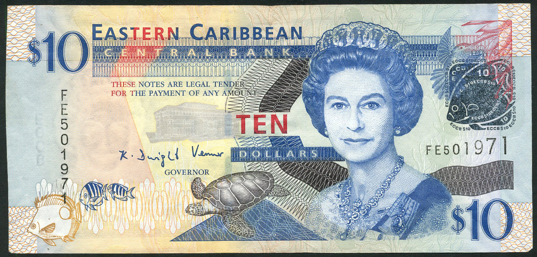 British Caribbean Territories, a group of notes comprising, $1, 1950, red, portrait King George VI at right, $1, 1962, red, portrait Queen Elizabeth II at right, East Caribbean Currency Authority, $1 (6), and Eastern Caribbean Central Bank, $5, green and multicolour, $10, blue and multicolour, both portrait Queen Elizabeth II at right