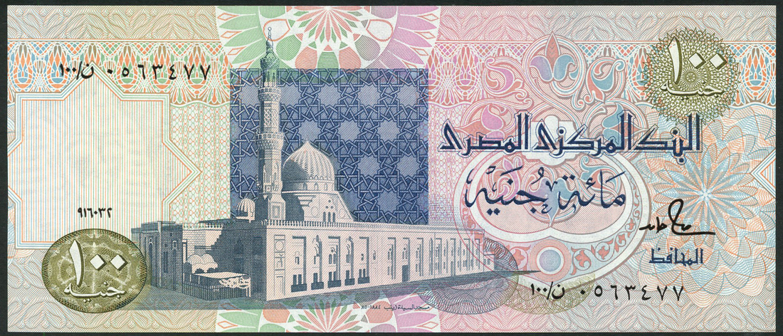 (x) Central Bank of Egypt, consecutive £100, 1992, serial 062477,78,79,80 Sayyeda Zeinab Mosque at left, M.S Hamed signature variety