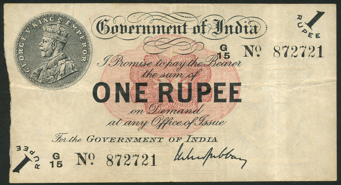 Government of India, a selection comprising 1 rupee, ND (1917-), prefix G/15, black, white and pale red, Gubbay signature, 1 rupee, 1935, prefix 22B, blue and green and orange, Kelly signature, 10 rupees, ND (1928-), prefix P/12, blue and green, Kelly signature, all George V portrait