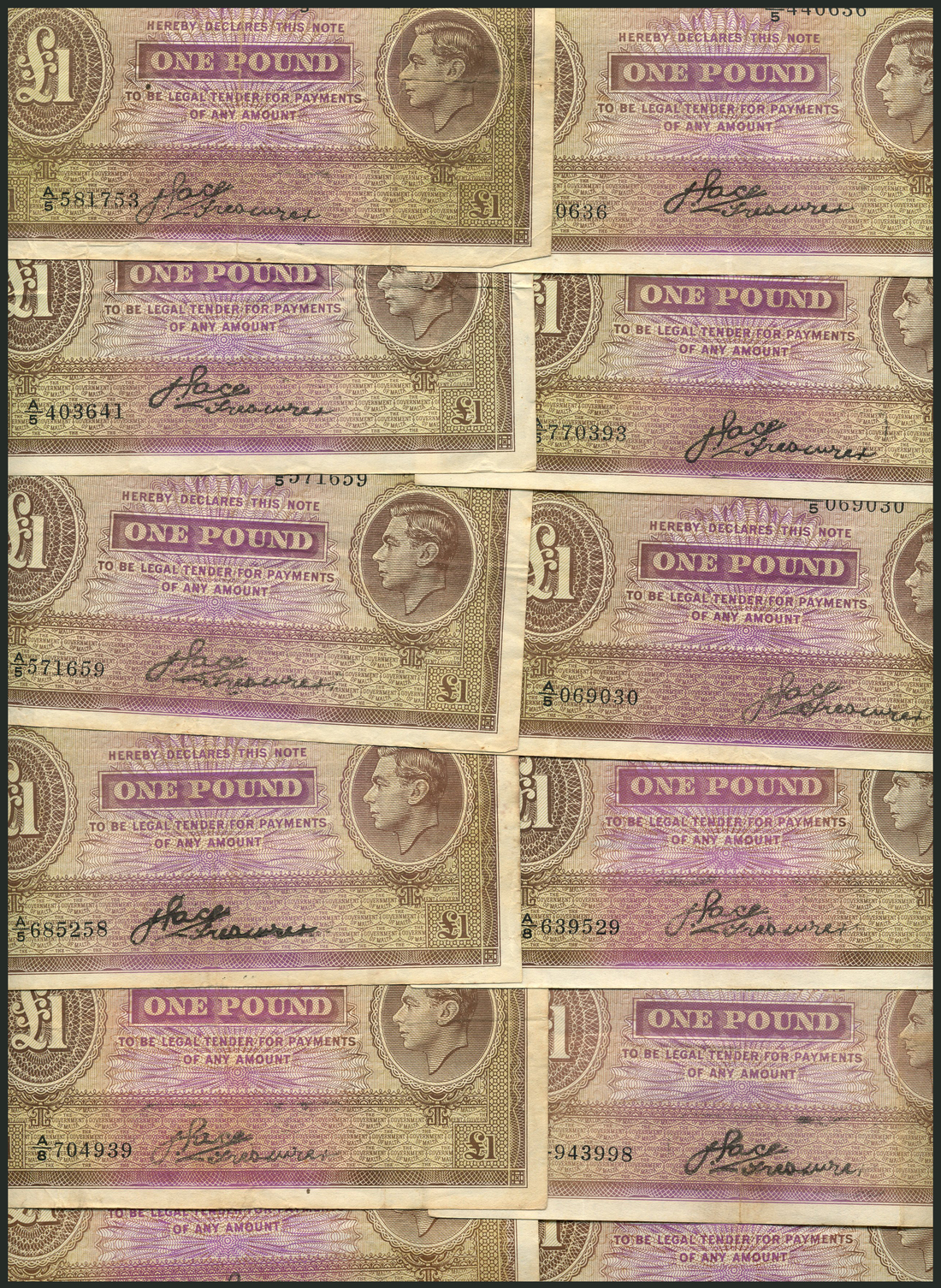 Government of Malta, £1, ND (1940), prefixes A/5 (7), A/8 (7) and A/9 (2), John Pace signature variety, brown and purple, King George VI at right
