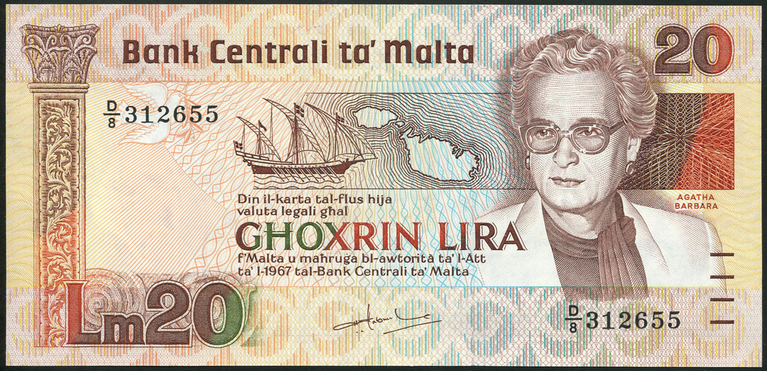 Central Bank of Malta, a full set from the 1967 (1986) issue, comprising, 2, 5, 10 and 20 lira, H.C.de Gabriele signature variety