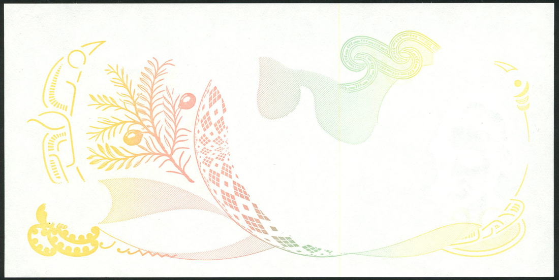 Reserve Bank of New Zealand, a set of progressive proofs for $20, ND (1981), comprising litho obverse 1st working, blue and grey-green; litho obverse 2nd working, sage-green, brown and olive; litho obverse 3rd working, pink and lilac; also litho reverse 1st working, yellow, pink and green; litho reverse 2nd working, green, violet, blue and pink; litho obverse and reverse 3rd working, portrait of the Queen and print missing from obverse and pigeon missing from reverse, all printed on paper with watermark of Captain James Cook