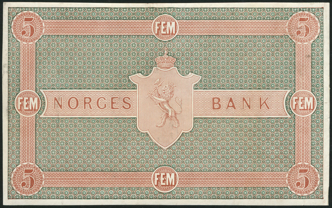 (†) Norges Bank, Norway, reverse uniface proof 1 Speciedaler, 1865-77, green and red; also reverse uniface proof 5 Speciedaler, 1866-77, red, black and green, both crowned arms at centre, value set in ornate rectangular frame