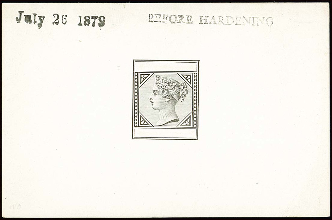 Master with blank name and duty plate in black on glazed card (92x60mm.), marked "before hardening" and dated "July 26 1879", fine. Photo