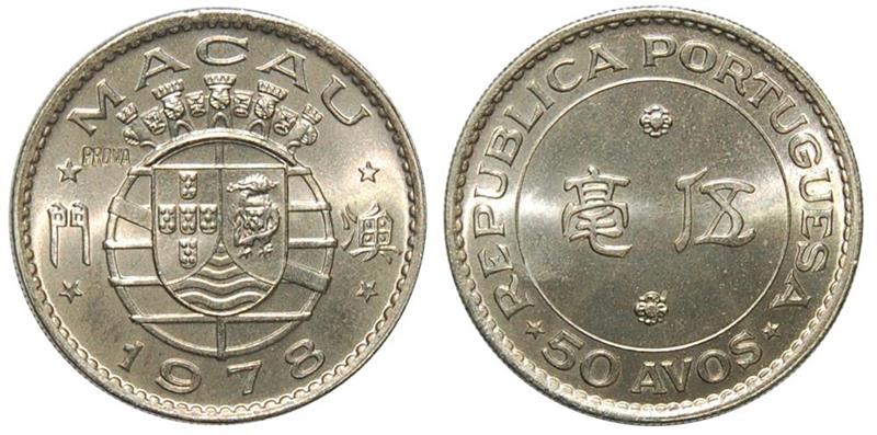 Macau, Pattern Nickel 50 Avos, 1978, 'Prova' struck in field, uncirculated, rare.