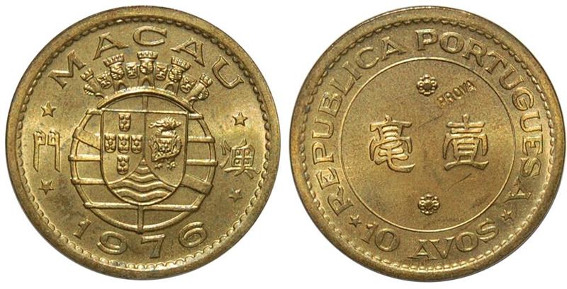 Macau, Pattern Nickel brass 10 Avos, 1976, 'Prova' struck in field, uncirculated, rare.