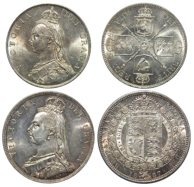 Great Britain, lot of 2 coins, florin and halfcrown, both dated 1887,