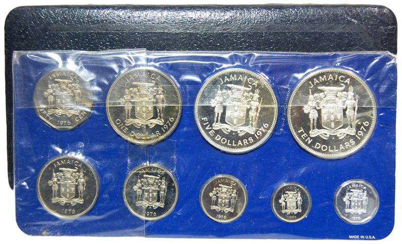 Jamaica, Silver Proof set of 1 cent, 5 cents, 10 cents, 20 cents, 50 cents, $1 and $2, 1976, all struck in Silver with original box,(KM PS13), uncirculated.