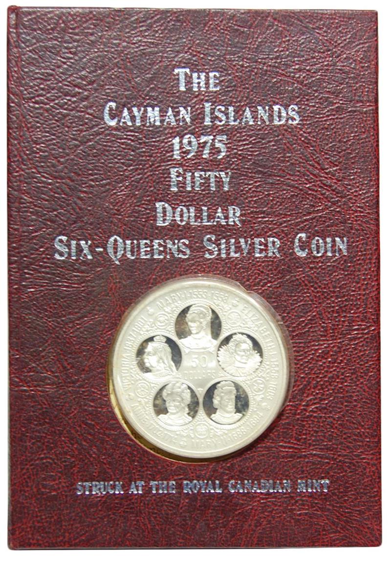 Cayman Islands, Silver Proof $50, 'Six Queens Silver Coin', 1976, housed in booklet with box,(KM 12), uncirculated.