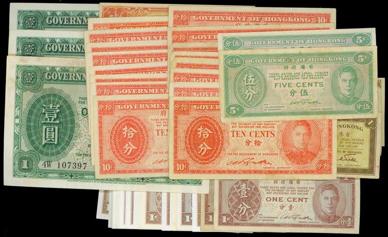 Government of Hong Kong, lot of 51 notes, 1cent to 1dollar, 1940's to 1950's, fine to uncirculated, viewing highly recommended (51).
