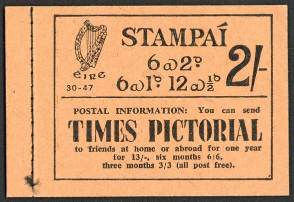 1946-47 2/- (edition 30-47), 1d. and 2d. panes watermark upright, ½d. panes with trimmed perfs., fine. S.G. SB7, £650