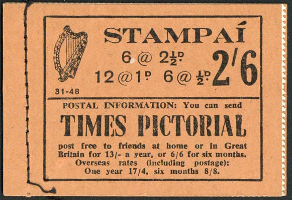 1948-50 2/6d. (edition 31-48), 1d. and 2½d. panes watermark upright, the second 1d. pane with perfs. slightly trimmed; fine. S.G. SB8, £300