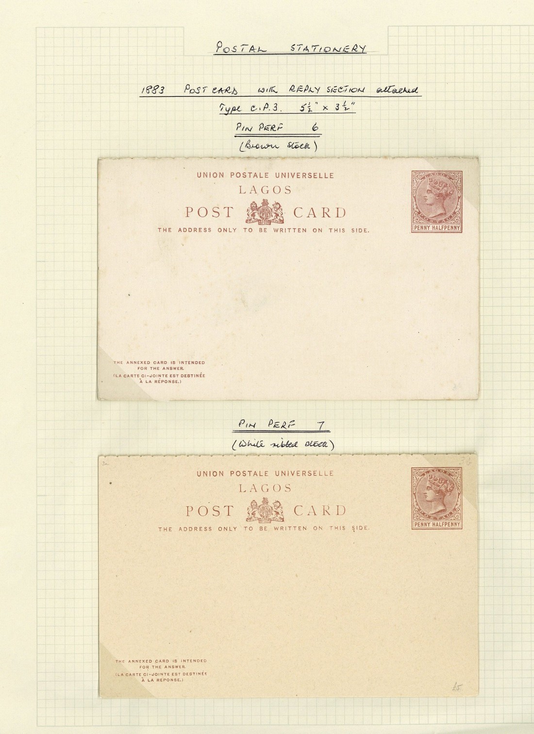 Postal Stationery: A small unused collection comprising cards with 1879 1½d. (2, one with vertical crease), 1887 1½d. (2, distinct shades) and 1½d. reply paid perf 6 and perf 7, 1892 1d. on 1½d. (3, different spacings; one cto), 1893 1d. and reply paid (two of both with one of each overprinted "specimen"), 1902 1d. and reply paid (two of both with one of each overprinted "specimen"), and registered envelopes 1895 2d. and 1902 2d. size G (two of both with one of each overprinted "specimen" - both with some very minor fox marks).