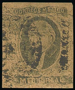 1867 Provisional Issue of Mexico City, ½r. black on buff, very slightly cut-into in places, otherwise good margins, used showing faint strike of c.d.s. A very scarce and difficult stamp. Yvert 32, Follansbee US$ 3,500 (2007). Photo