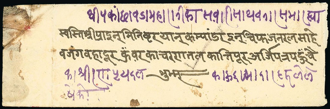 1846 (Apr.) small native envelope from Benares to the Napalese Prime Minister, Jung Bahadur Gunwar at Kathmandu, sent by nobles who had accompanied the junior Queen Shree Rana into exile; fine. Photo