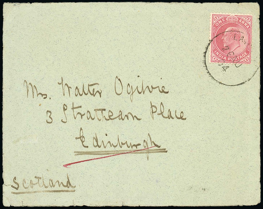 1904 (26 Aug.) envelope to Scotland, bearing 1902-11 1a. cancelled by a good strike of the "lahssa" c.d.s. (Hellrigl B42), superb Base Office (6.9) c.d.s. on reverse. Photo