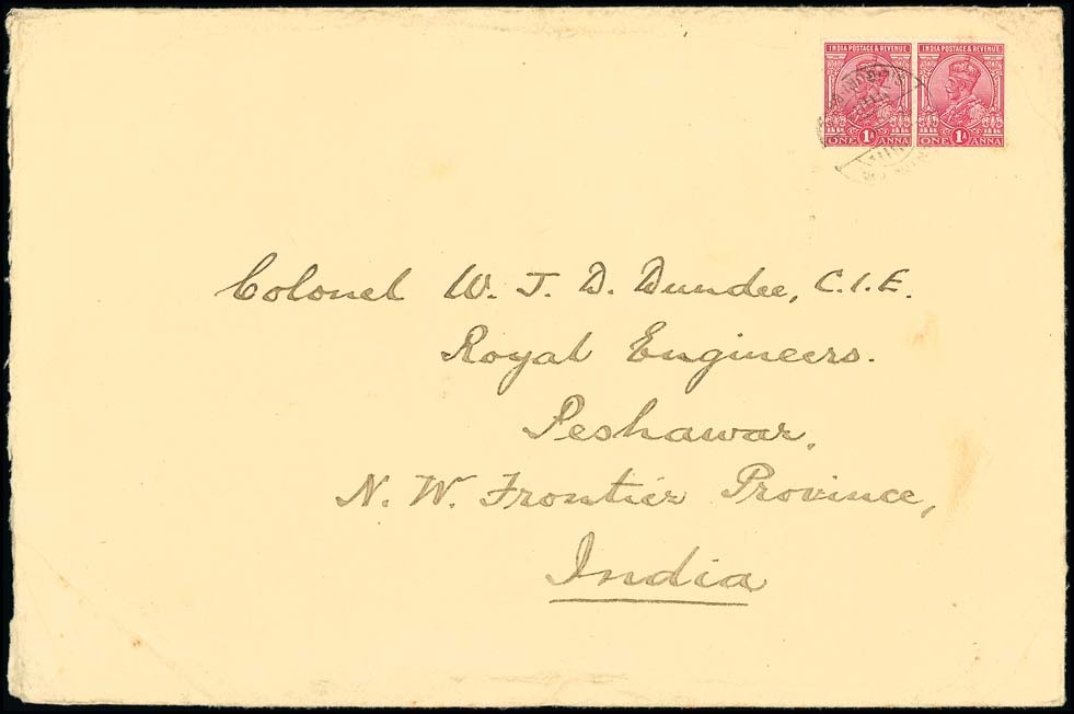 1916 (7 Apr.) large envelope to Colonel W. Dundee, Peshawar, bearing 1a. (2) with "gyantse-tibet/siliguri base" c.d.s. (Hellrigl B14), large intact native red wax seal on reverse; fine. Photo