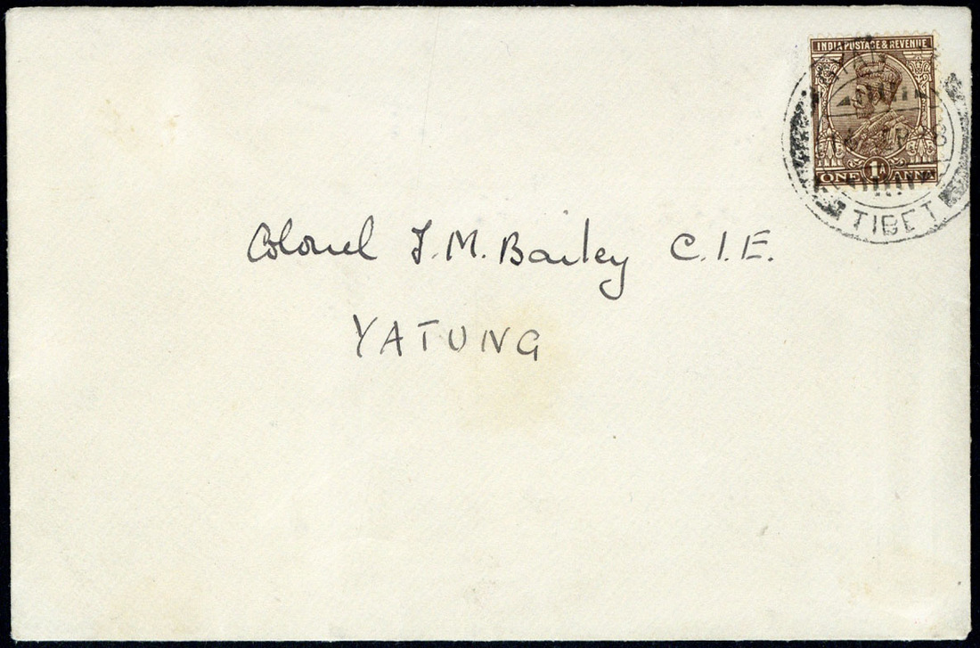 1928 (14 Sept.) envelope to Colonel J.M. Bailey at Yatung bearing 1a. with "gyantse/tibet" c.d.s. (Hellrigl B16); fine