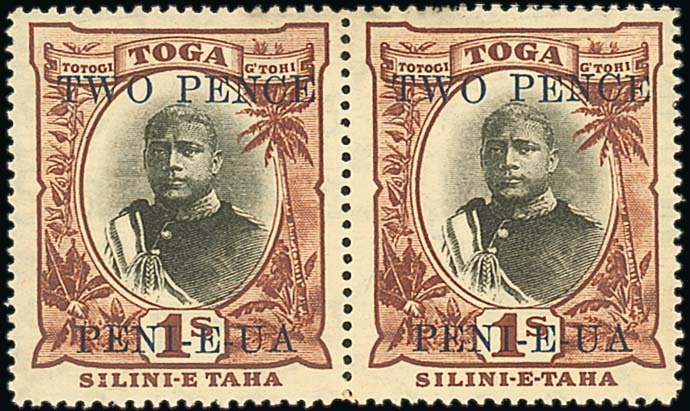 1923-24 2d. on 1/- black and brown, variety no hyphen before "taha", in horizontal pair with normal, fine mint and scarce. S.G. 67/67a, £450. Photo