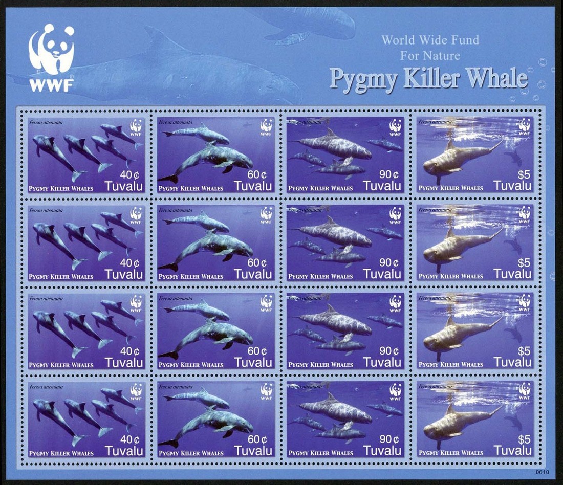 2006 Endangered Species, Pygmy Killer Whale (incorporating the World Wildlife Fund) se-tenant horizontal strips of four, two hundred sheetlets of sixteen contained in a sealed printers pack with additional sample sheetlet. Unmounted mint. S.G. 1224a, £8,442