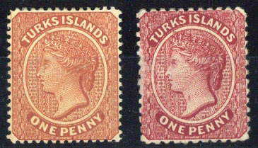 1883 CA 1d. orange-brown and 1887 perf. 12 1d. crimson-lake (trivial surface rub at left), both with throat flaw, fresh mint. S.G. 55b, 58b, £465
