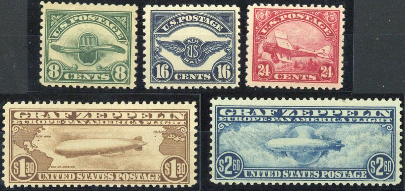 1923 (Aug.) Air 8c. to 24c. and 1930 (19 Apr.) Graf Zeppelin $1.30 and $2.60; fine unmounted mint. S.G. A614-16, A668-69