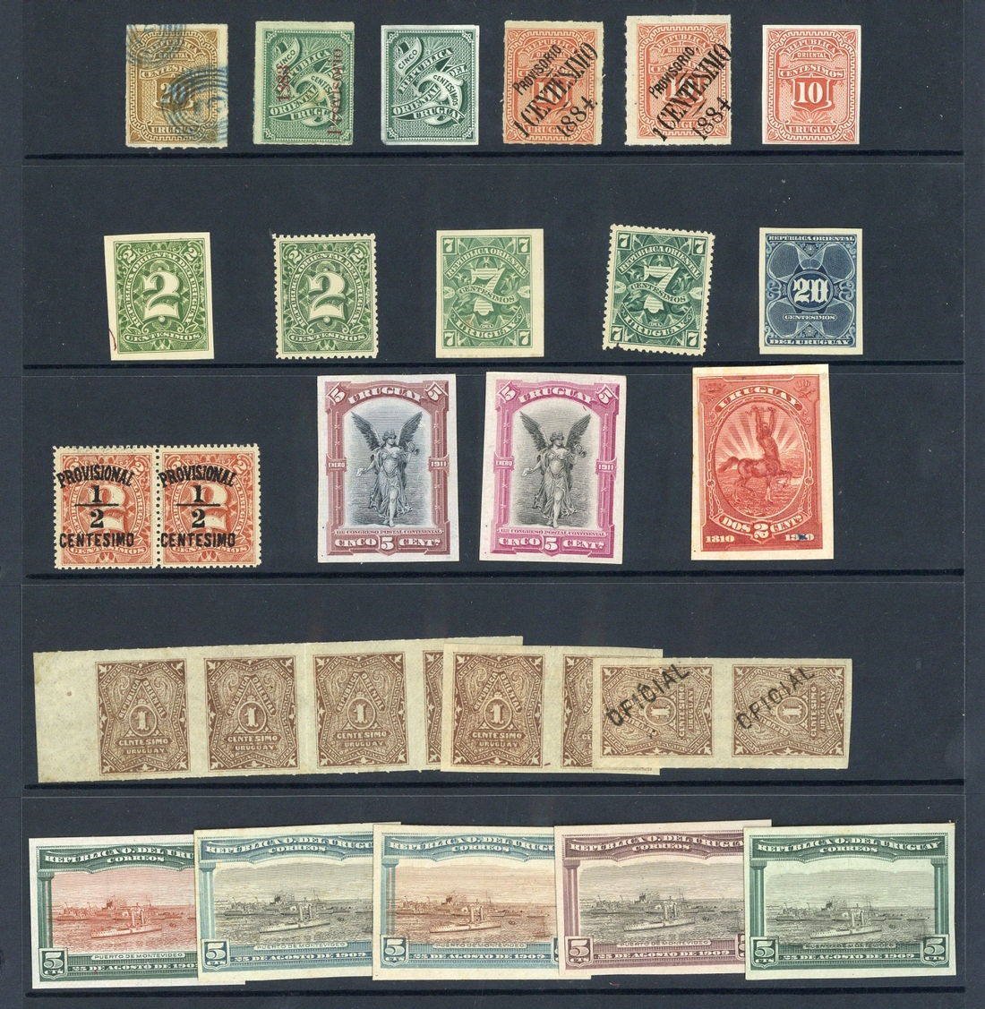 Selection on stock pages, 183 stamps including 1877-79 1c. block of twelve from the foot of the sheet with four blank spaces, 1909 Montevideo 5c. imperf. colour trials on card (5), 1911 Postal Conference 5c. imperf. colour trials on card (2), etc., mixed condition