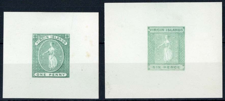 1d. and 6d. in blue-green on separate pieces (47x43mm. - light stains clear of impression and 58x48mm.), fine