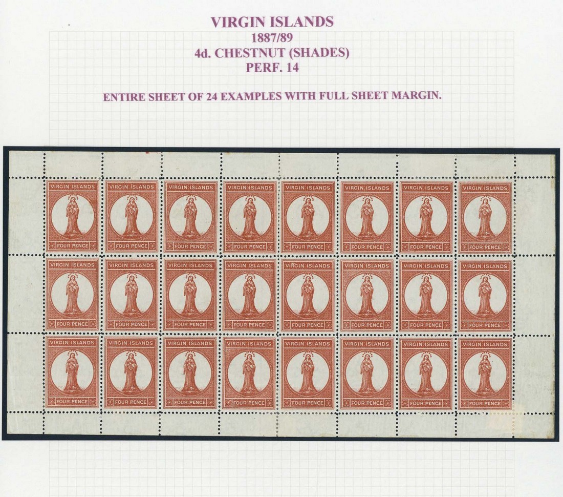 1887-89 CA 4d. chestnut complete sheet of twenty-four (8x3), some hinge remnants on reverse, fine mint. S.G. 35, £840