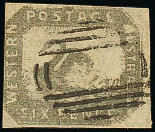1857-59 6d. grey-black showing most of swan missing transfer error, good margins on three sides, touched at left, sound used. S.G. 19, £550. Photo