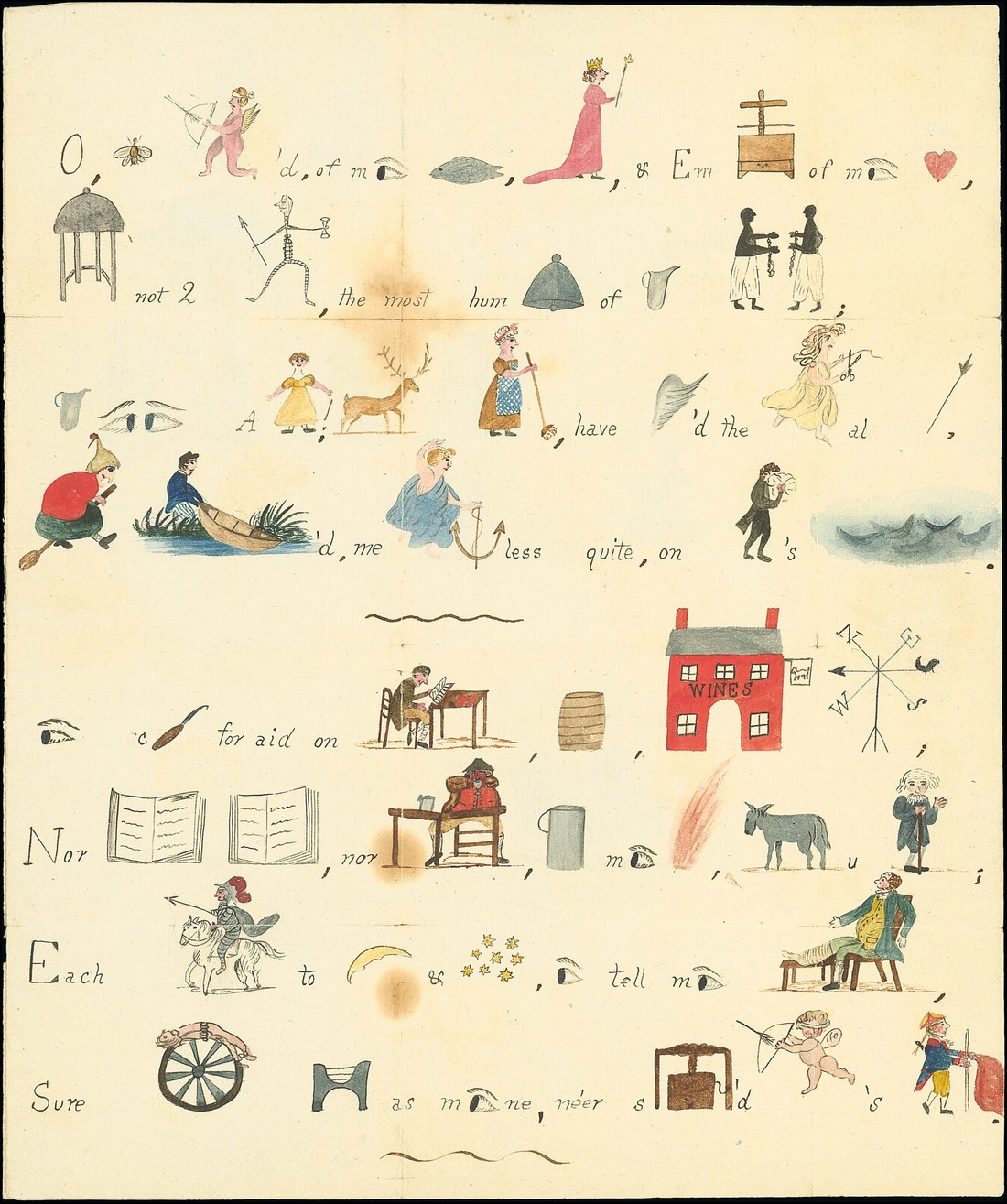 1814 (c.) coloured rebus Valentine, postally used from London to Beverley, on reverse framed "Gt. RUSSELL St." marking; minor staining but most unusual and intriguing. Believed to be the only recorded English rebus Valentine of this early period. Photo