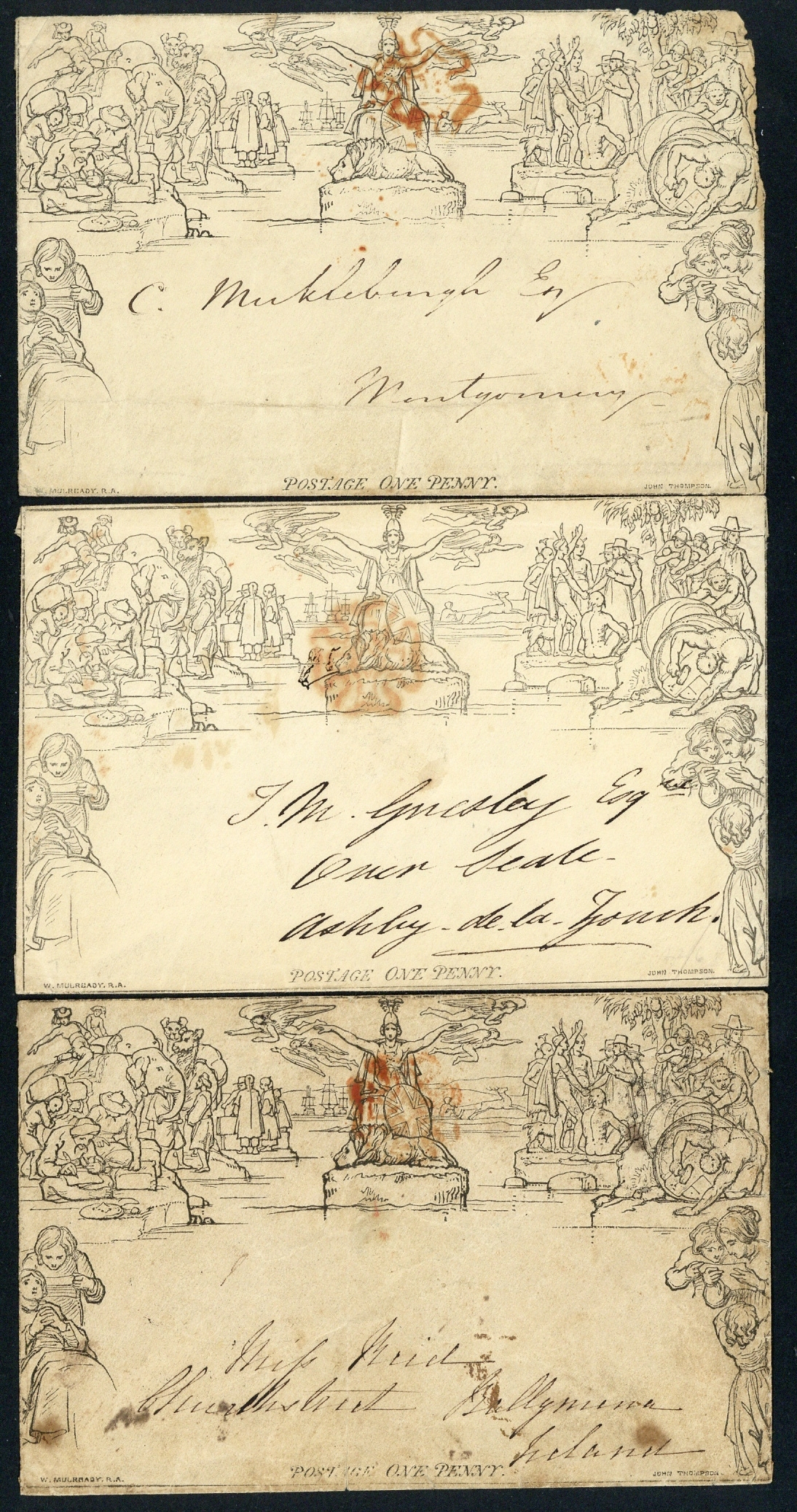 A146, dated 14 July 1840, from Southwell to Ballymena, A154, dated 6 June 1840, to Ashby De la Zouche, A293 (rare unallocated stereo) from Oswestry to Montgomery (ex Alcock); all with red Maltese Cross cancellations; mixed condition