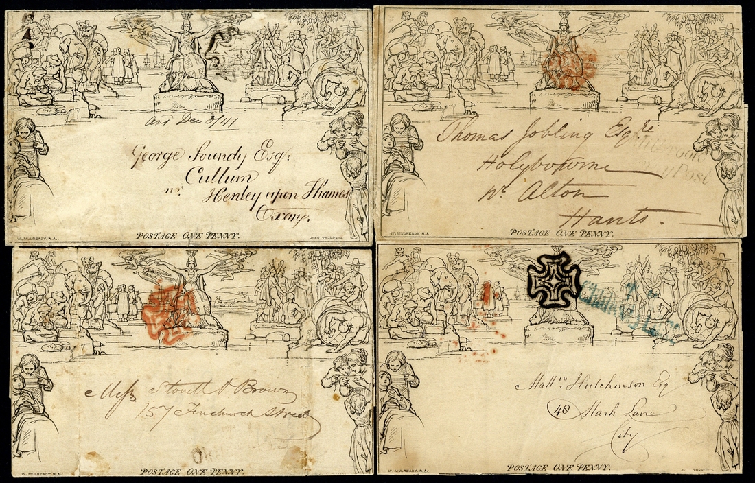 A1, dated 29 May 1841, used within London; A9, dated 29 Nov. 1841, from London to Oxon; A24, dated 30 July 1840, used within London; A25, dated 25 Nov. 1840, used from Oxford to London; A37, dated 15 Jan. 1841, to Hampshire and with "Milbrook/Penny Post"; all with faults