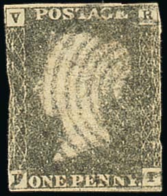 FF, bearing trial cancellation of concentric circles which has been partially removed by official attempts to remove the cancellation; mixed margins. R.P.S. Certificate (1981). S.G. V1, £35,000. Photo