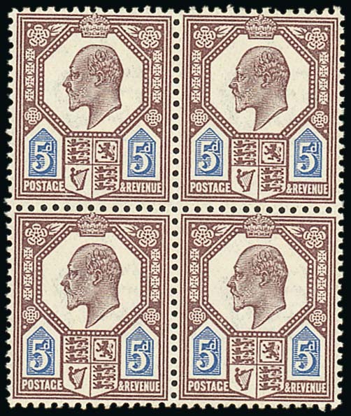5d. dull purple and ultramarine, block of four, unmounted mint, a few small wrinkles, fine. S.G. 242, £540+. Photo