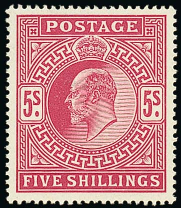 5/- bright carmine, fine unmounted mint. S.G. 263, £450. Photo
