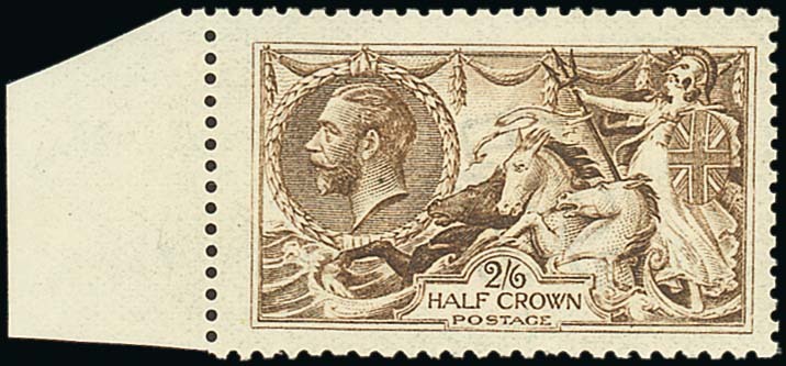 2/6d. dark brown, [R2/1] re-entry, unmounted mint from the left of the sheet, slightly yellowish gum, short perf. and tiny coloured mark on the King's neck; fine. S.G. 406a, £2,800. Photo