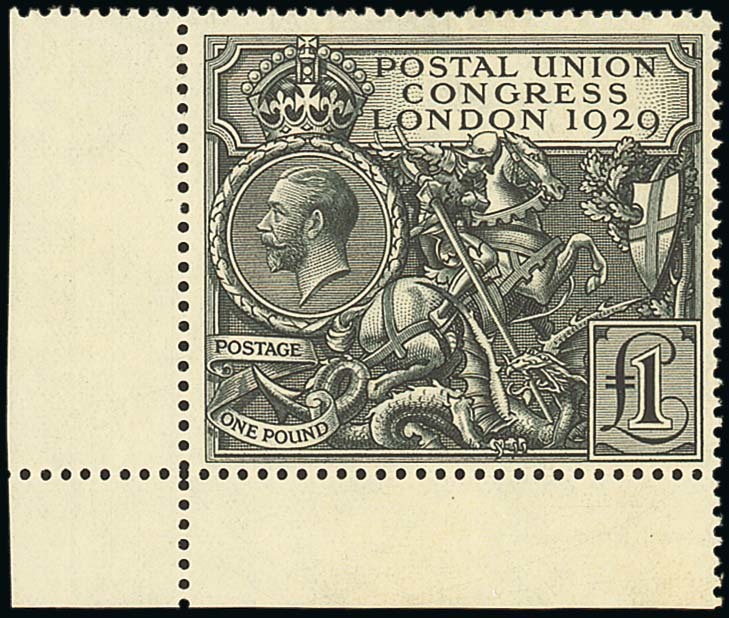 £1 black lower left corner example, unmounted mint; slightly off-white gum. S.G. 438, £1,100. Photo