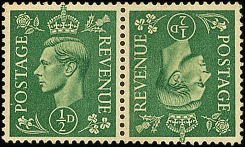 1941-42 ½d. pale green, tête-bêche horizontal pair, original gum, a trifle soiled and stained. Extremely rare. R.P.S. Certificate (2014). S.G. 485a, £18,000. Photo