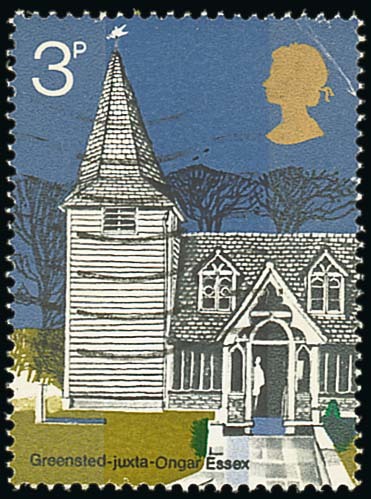 1972 British Architecture 3p. St. Andrew's, variety orange-vermilion omitted, wavy line cancellation, crease at upper right corner, small coloured mark on reverse. Rare. With normal for comparison. S.G. 904b, £5,500. GBR 1808b, £5,500, quantity: 2 used examples. Photo