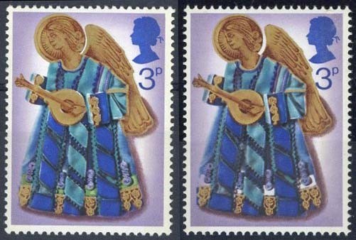 3p. Angel playing lute, variety bright green omitted, unmounted mint, fine. With normal for comparison. S.G. 914b, £300. GBR 1828b, £300, quantity: 150