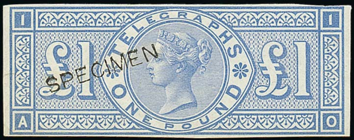 Pale ultramarine, AO, overprinted "specimen" type 8, part original gum, close at places; fine. Specialised £800. Photo